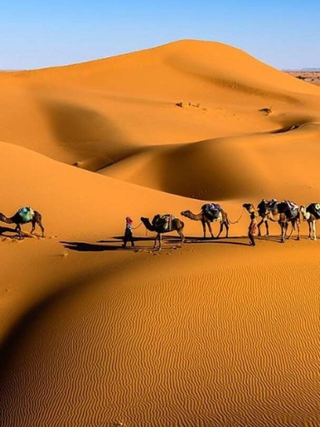 Os camelos são extraordinários viajantes do deserto. Eles podem andar entre 200 e 270 km por dia, uma habilidade vital para atravessar o vasto e árido terreno do deserto.