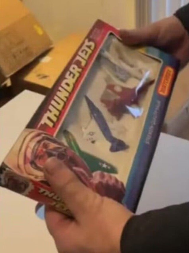 'Quando tirei aquilo, era um papel de embrulho supervelho', declarou King à emissora KTLA5. Ao abrir o antigo presente, ele descobriu que se tratava de um conjunto de Matchbox Thunder Jets - aeromodelos fabricados nos anos 70. O homem especula que o pacote deve ter caído em um vão da parede quando estava escondido no sótão da casa. A mãe, por sua vez, não se recorda de ter comprado o brinquedo.