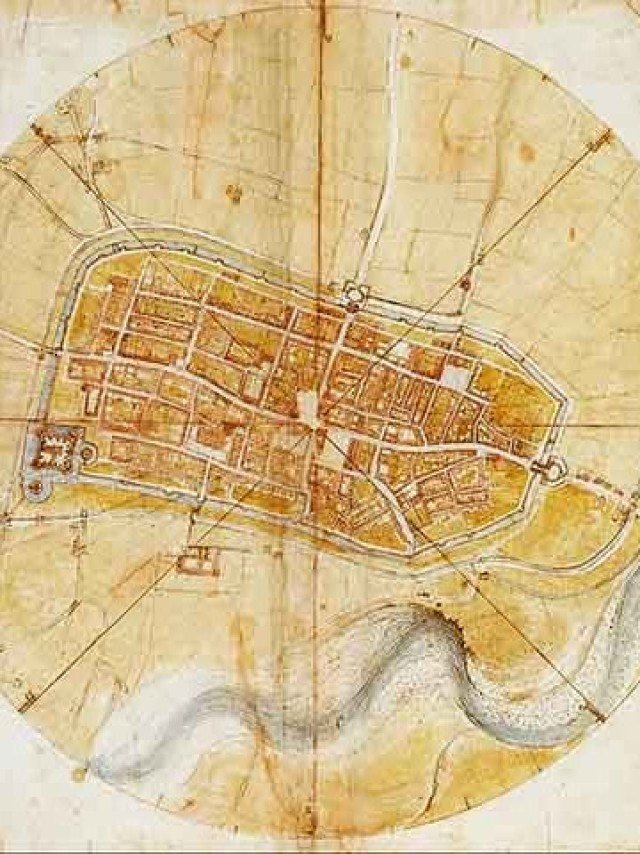 Um exemplo pouco conhecido é o mapa que ele criou para a cidade italiana de Ímola no século 16 — considerado um dos primeiros mapas urbanos modernos da história.