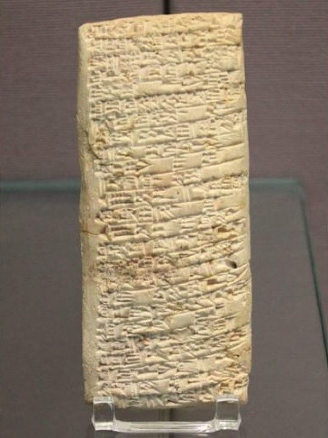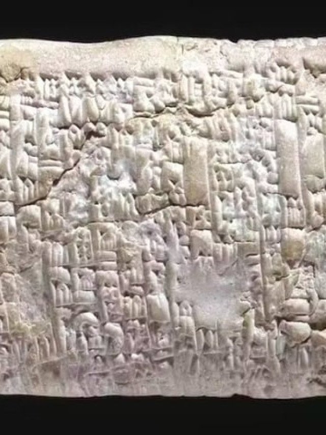 O texto foi decifrado da escrita cuneiforme, um sistema que usava símbolos em forma de cunha marcados em tábuas de argila.