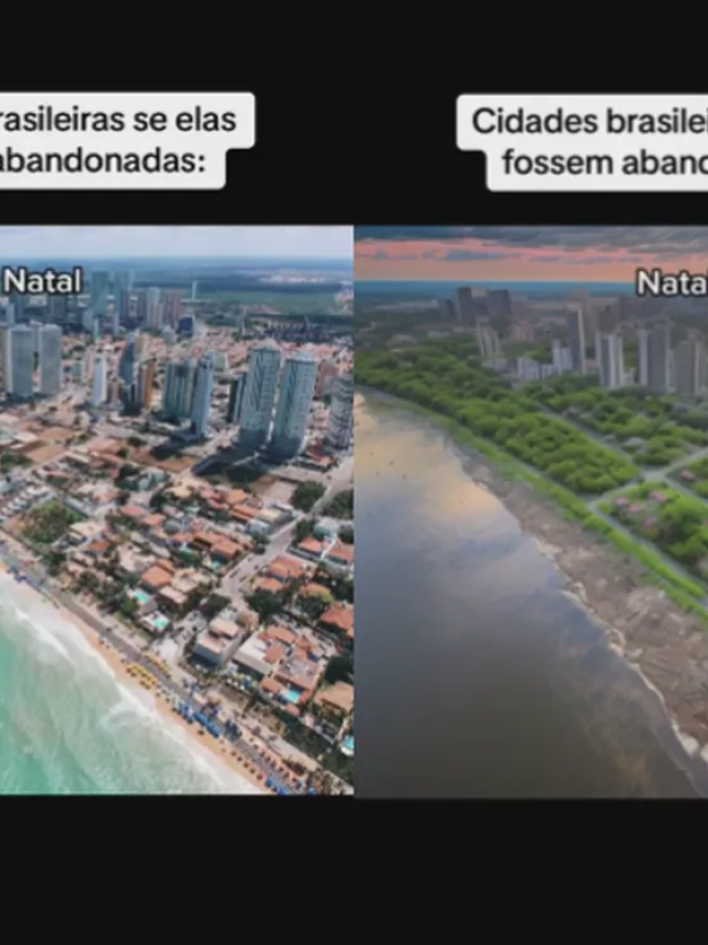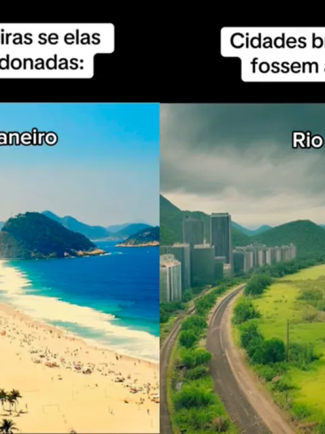 Por outro lado, com a Inteligência Artificial (IA), a mesma paisagem foi transformada em uma cidade abandonada. É possível ver a areia da praia tomada por um longo espaço de matagais.